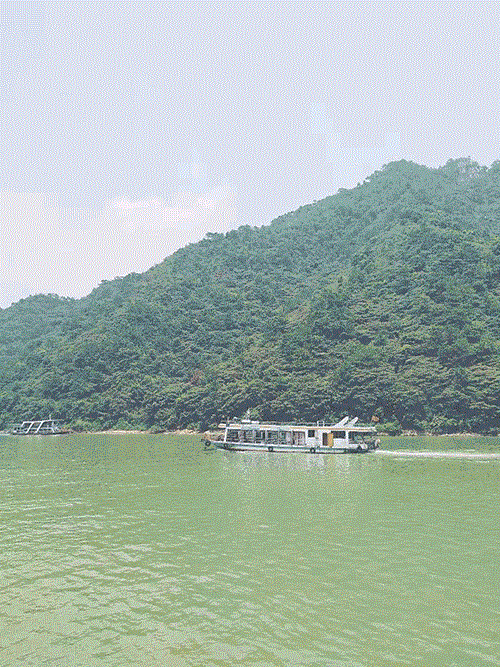第一天中午,便安排游船午餐,在碼頭乘船游覽「北江小三峽」。這里風(fēng)平浪靜、山巒青翠欲滴、江灣碧綠清澈,一派詩情畫意。