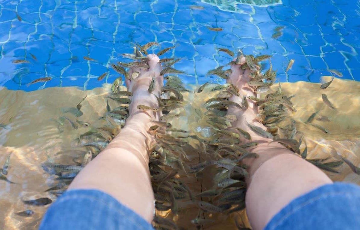 同時(shí)還設(shè)有特色魚療區(qū),通過小魚啄食肌膚,達(dá)到按摩、緩解疲勞的作用。