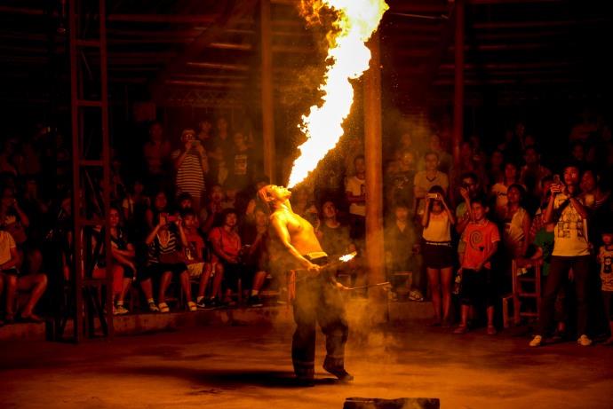 除了“娶妻”活動(dòng),還有瑤家阿貴(未成婚的小伙子)表演的踩鋼刀、火燒身以及噴火等精彩活動(dòng),讓大家親身感受瑤寨的萬種風(fēng)情和瑤族同胞的款款熱情。